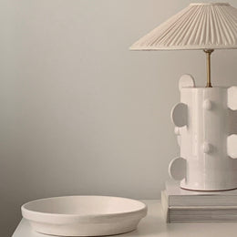 Lámpara artesanal realizada en barro y lacada al horno en banco brillo.