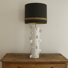 Lámpara artesanal realizada en barro y lacada al horno en banco brillo.