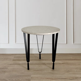 Add a touch of sophistication and style to your space with our curved iron design side table with a campaspero top today!
